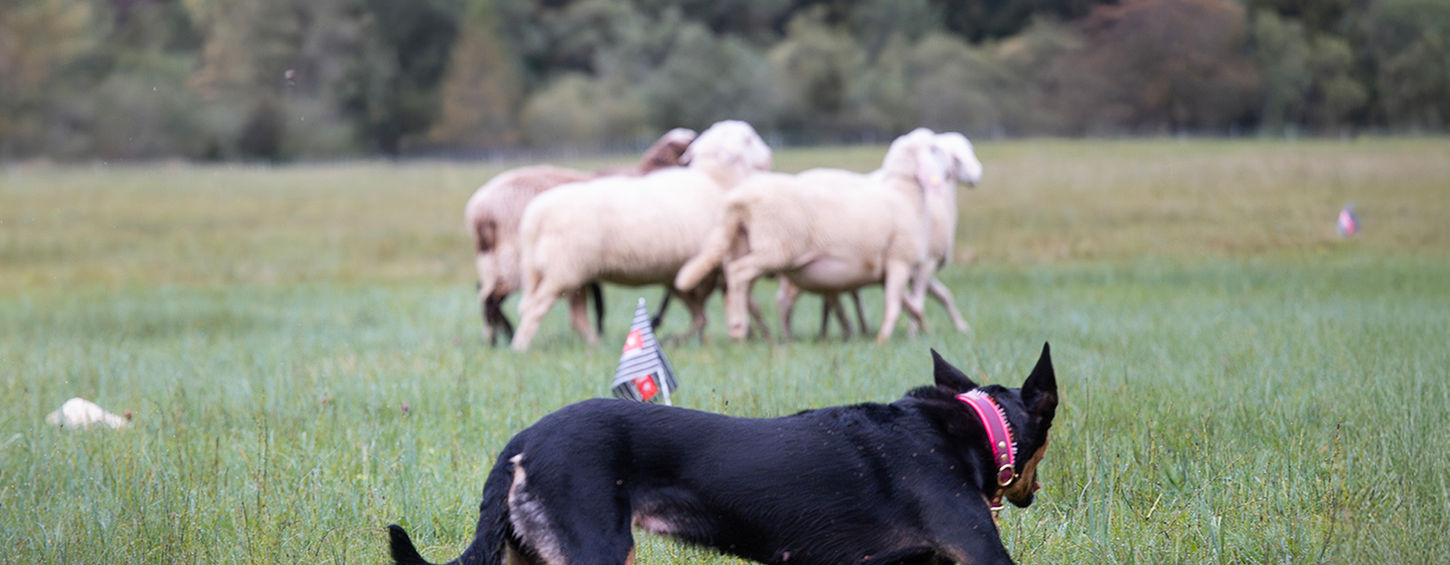 Einsatz. Ist der Startende am Startpfahl, macht sich der nächste im Wartebereich bereit.Der Anlass wird unter dem sogenannten «Arbeitsprüfungsreglement für Herdengebrauchshunde» durchgeführt, das in Zusammenarbeit mit dem BLV (Bundesamt für Lebensmittelsicherheit und Veterinärwesen) entwickelt wurde, um die Einhaltung und den Schutz der betroffenen Tiere (Hunde und Schafe) zu gewährleisten. Alle aufgeführten Bestimmungen in diesem Reglement sind einzuhalten bzw. werden in Anlehnung an dieses Reglement angewendet.
